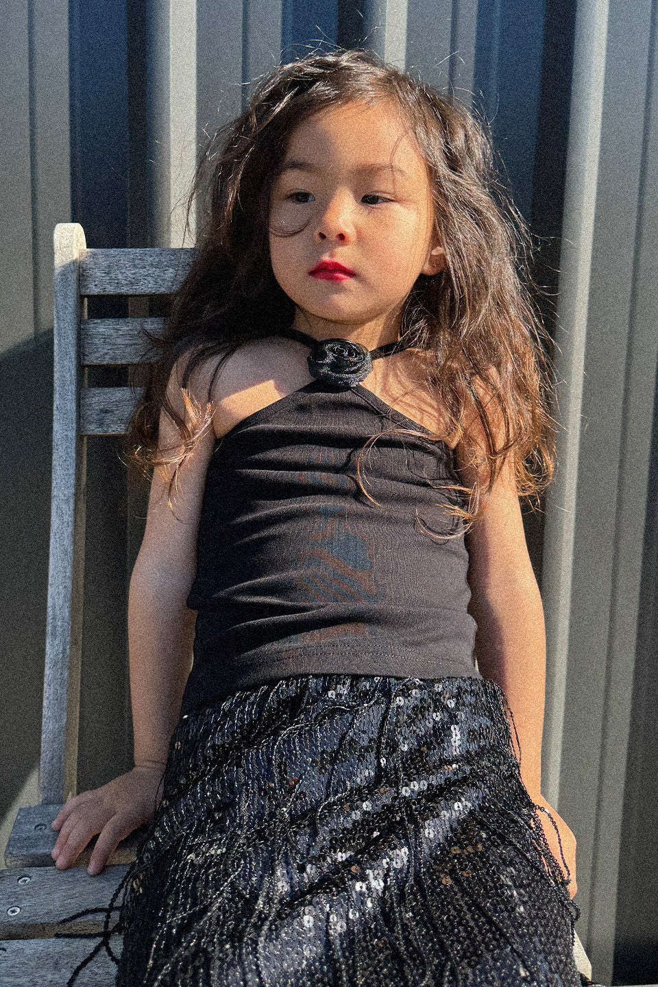 Sweet as a rose, soft as a cloud, our black pink cotton top is a little dream come true! Adorned with a delicate organza rose, it’s the perfect mix of everyday comfort and fairytale charm for your little girl.